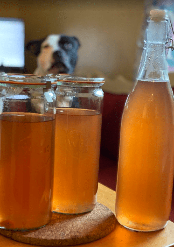 Cirka 4 liter drickfärdig rabarbersaft, koncentrerad och redo att användas.